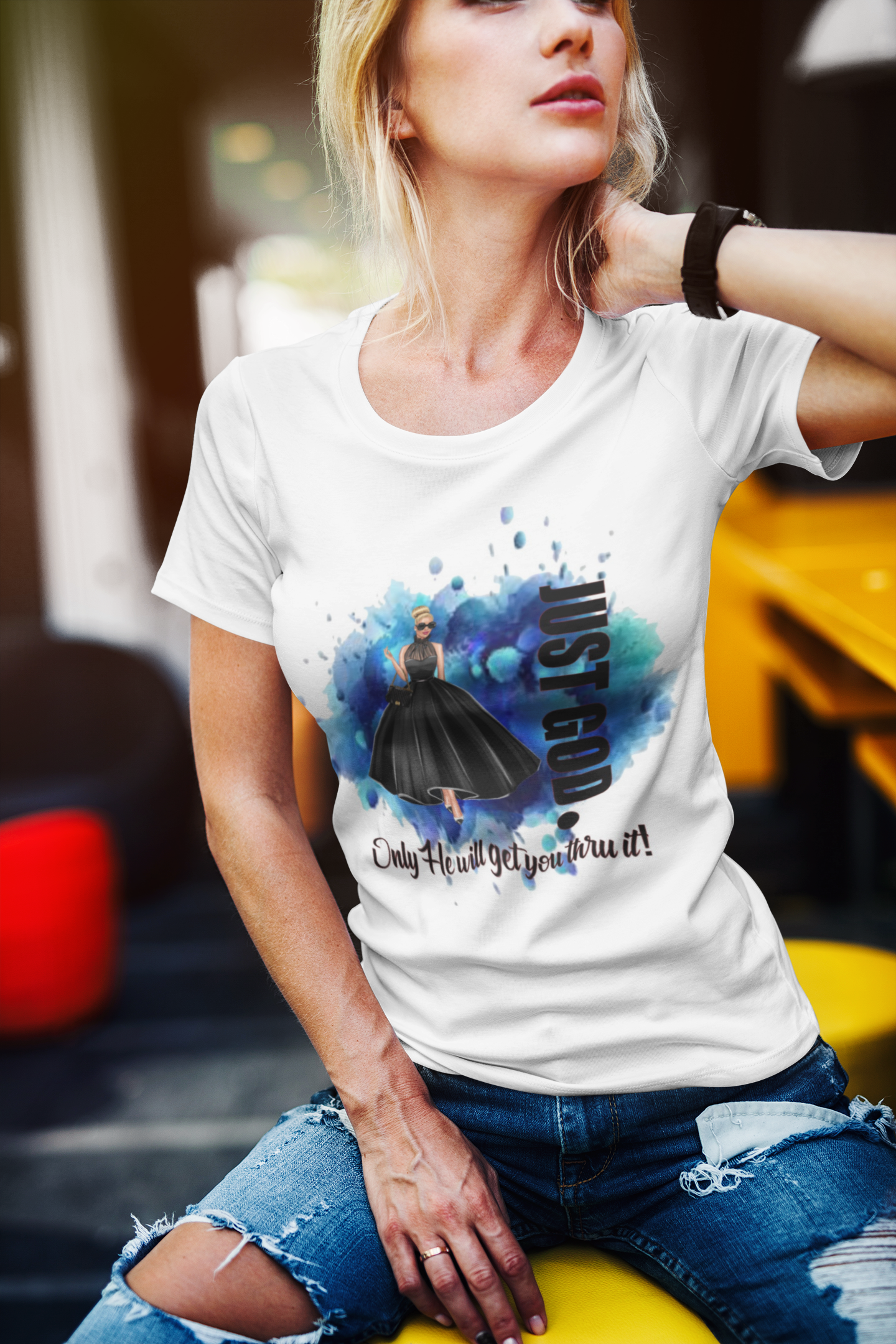 Just God White polyester t shirt. Design is printed onto shirt and will last for years to come with proper wash settings. Design is available on other items as well.