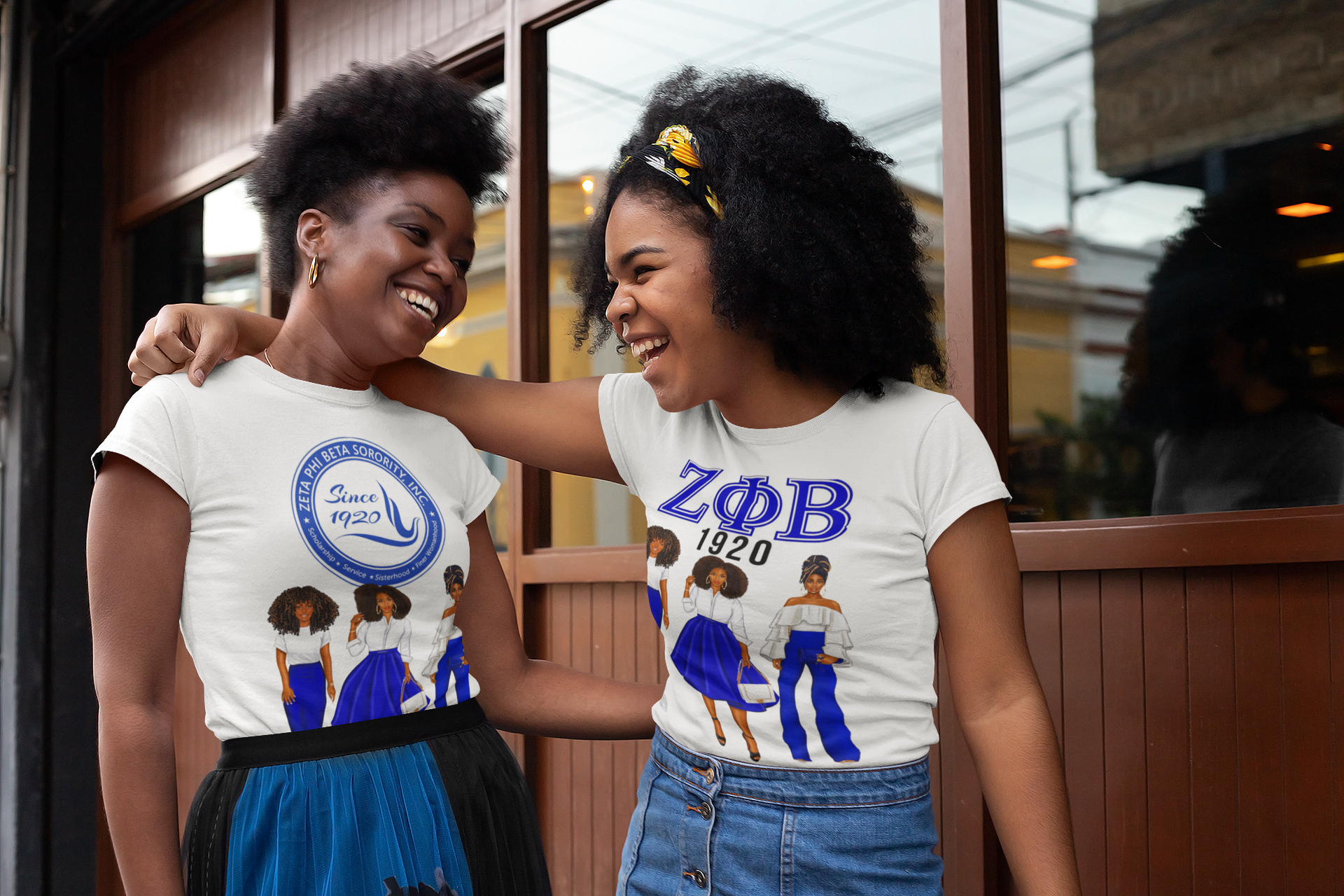 Our models are each wearing the inspired colors of the Zeta Phi Beta sorority. Shirts are available in a WHITE v -neck style only.